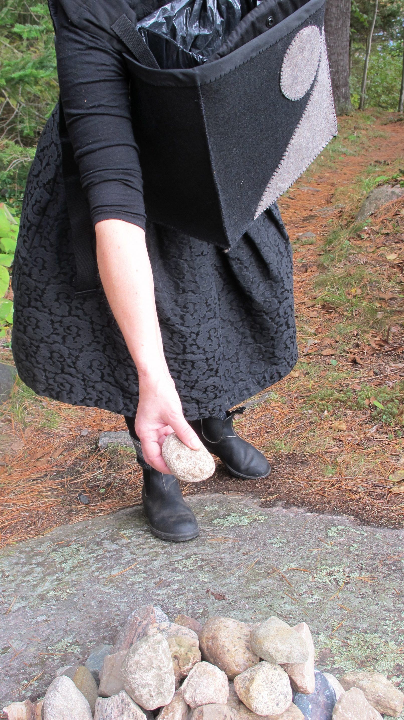 In her performance, Wren collects and carries fifty – one pound rocks up a hill to a cabin in the woods. At the top of each climb, she drops one rock and heads down to carry up the other forty-nine. Wren does this until the fifty rocks are in a pile at the top of the hill. Unlike Sisyphus, she frees herself of the burden and dives in the river. In Camus’ The Myth of Sisyphus essay, he asks the readers to imagine Sisyphus happy because his fate allows him the time to contemplate the absurd. “The struggle itself toward the heights is enough to fill a man’s heart.” Informed by Camus, Wren finds meditation in labour’s repetitive tasks.